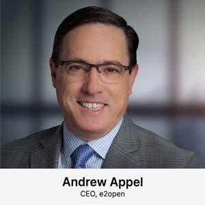 With e2open, companies see, decide, and act on one cloud platform. We cut risks, costs, and carbon while Moving as one.™ This is real supply-chain certainty that our clients can measure every day. — Andrew Appel, CEO