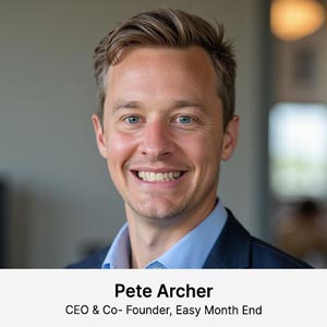 Easy Month End automates reconciliations, flags exceptions in seconds, and locks down data with enterprise-grade security, so controllers close sooner, audit smarter, and spend the saved hours on growth. — Pete Archer, Co-Founder & CEO